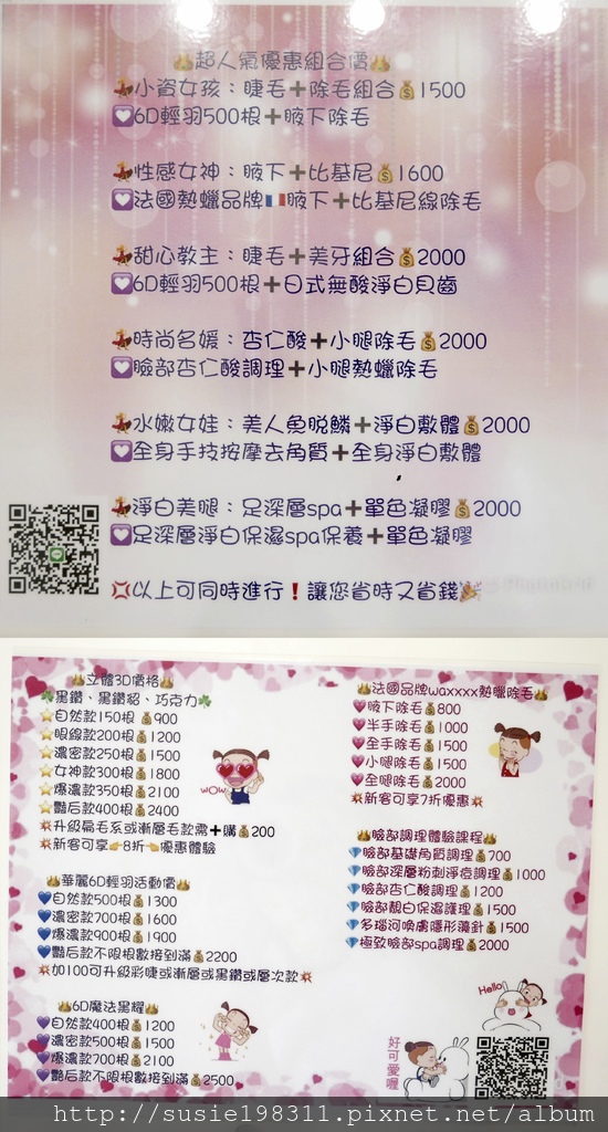 仔細一看,服務項目其實還挺多的,除了除毛之外,也有美甲美睫美療…等,感覺在這裡待上一天可以脫胎換骨吔!