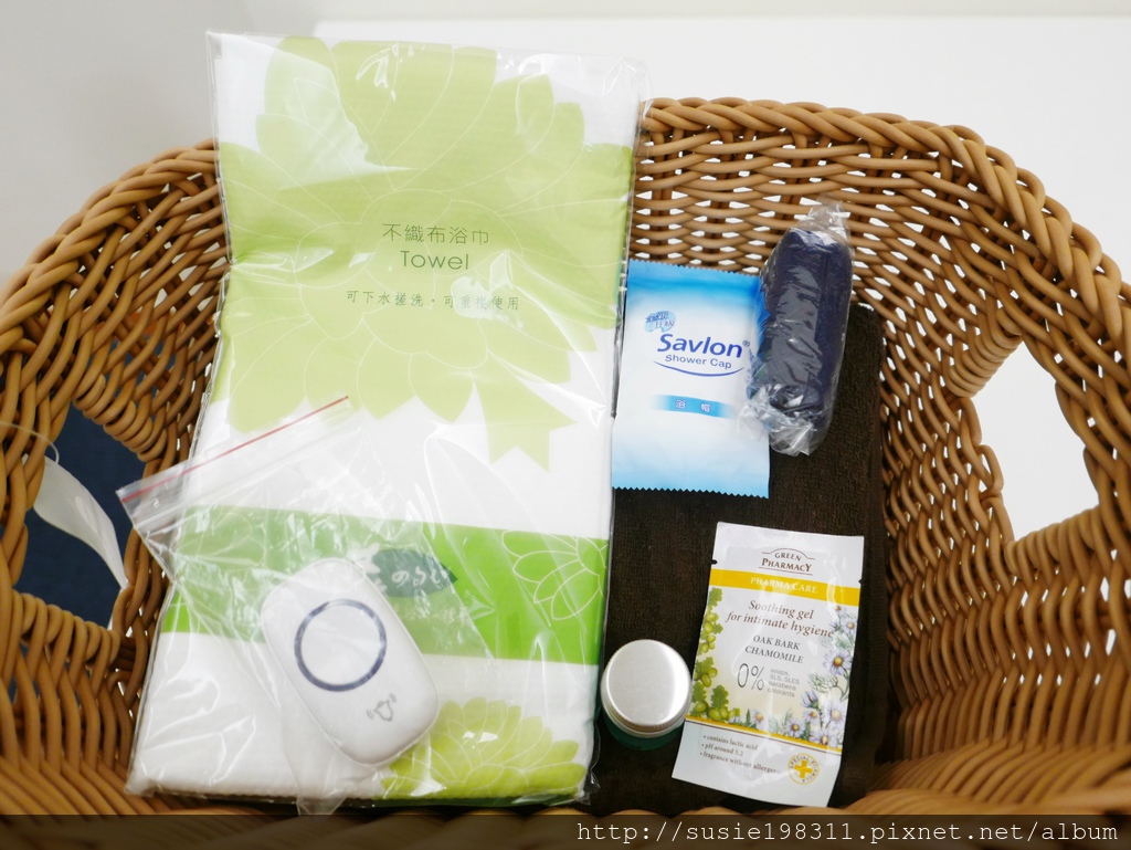 芳療師簡單的介紹備品,等等就要來take a shower囉!因為是做全身精油按摩X比基尼線(私密處)熱蠟除毛,