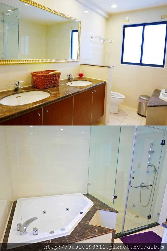 浴室也很是霸氣,根本就是貴婦般享受,竟然還有按摩浴缸耶!!
