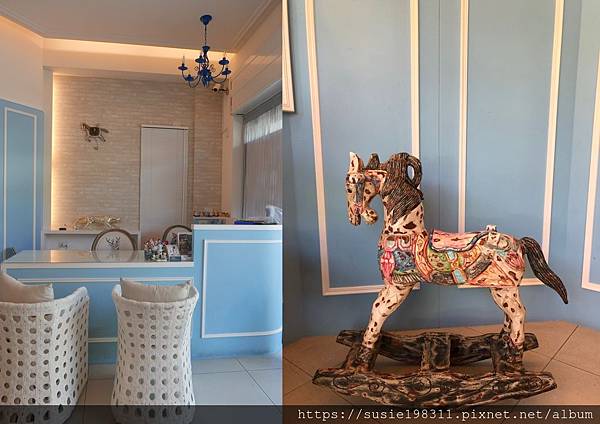 粉藍色調結合一些擺設,柔和的光線令人放鬆