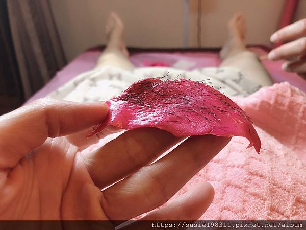 看看這美麗的粉紅蠟,最適合除的長度大約是1.5公分左右
