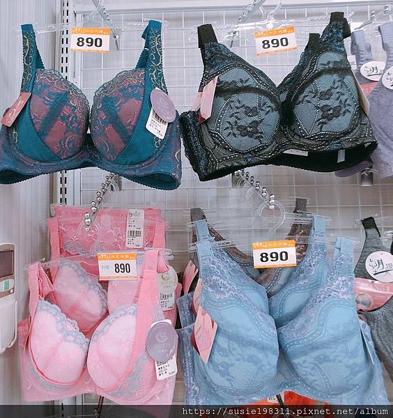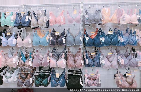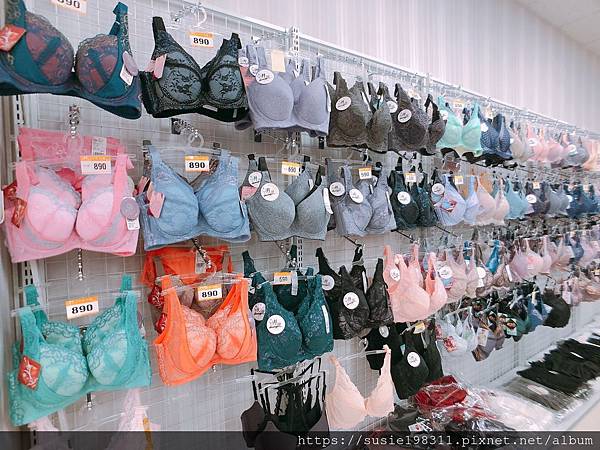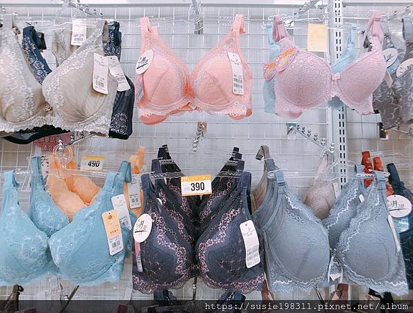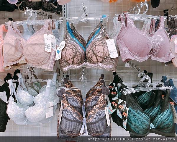 再往下走就是超美的內衣牆,真的打破我對平價內衣的既定印象,不論花色款式或功能,樣樣都不馬虎,而且有些是威妮內著的自我品牌喔~看到那個標價簡直太佛心了。
