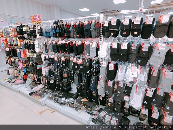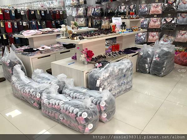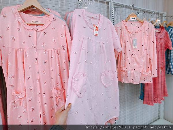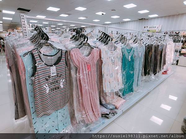 進門左手邊是襪子區和女性睡衣,睡衣款式很多,長版短版都有,質料摸起來很舒服~